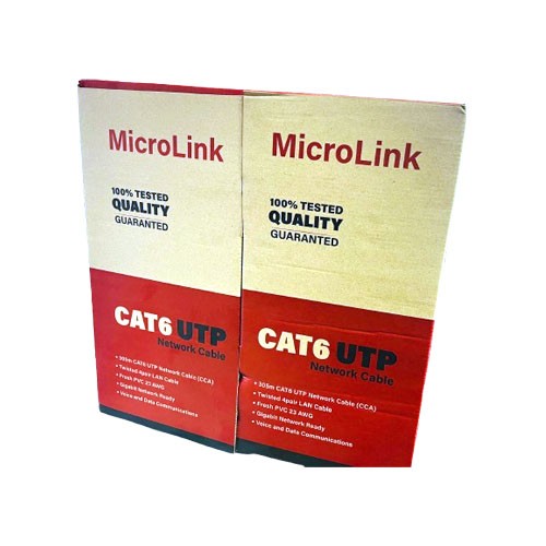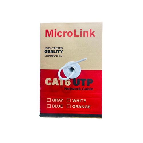 Brand - Microlink, Type - Network Cable, Length - 305 Meter, Connector Type - RJ45, Conductor Material - CCA, Jacket Material - PVC, Cable Shielding - UTP (Unshielded Twisted Pair), AWG – Fresh PVC 23, Weight – 9.5 kg, Compatible for - Network Switch, IP Cam, Routers, Nintendo Switch, ADSL, Adapters, Modem, PS3, PS4, X-box, Patch panel, Servers, Network Printers, Netgear, TP-link, NAS, VoIP Phones, Laptop, Coupler, Hubs, Jack Keystone, Smart TV, iMac and other device with RJ45 connectors., Color - White, Feature - 305.0 m (1000 ft)/carton UTP CAT6, power over Ethernet, compatible with one cable, Country of Origin - China, Made in/ Assemble - China