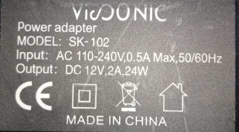 Pawer Adapter.INPUT AC110-240V,0.5A max 50/60Hz OUTPUT-Dc 12V,2A,24W